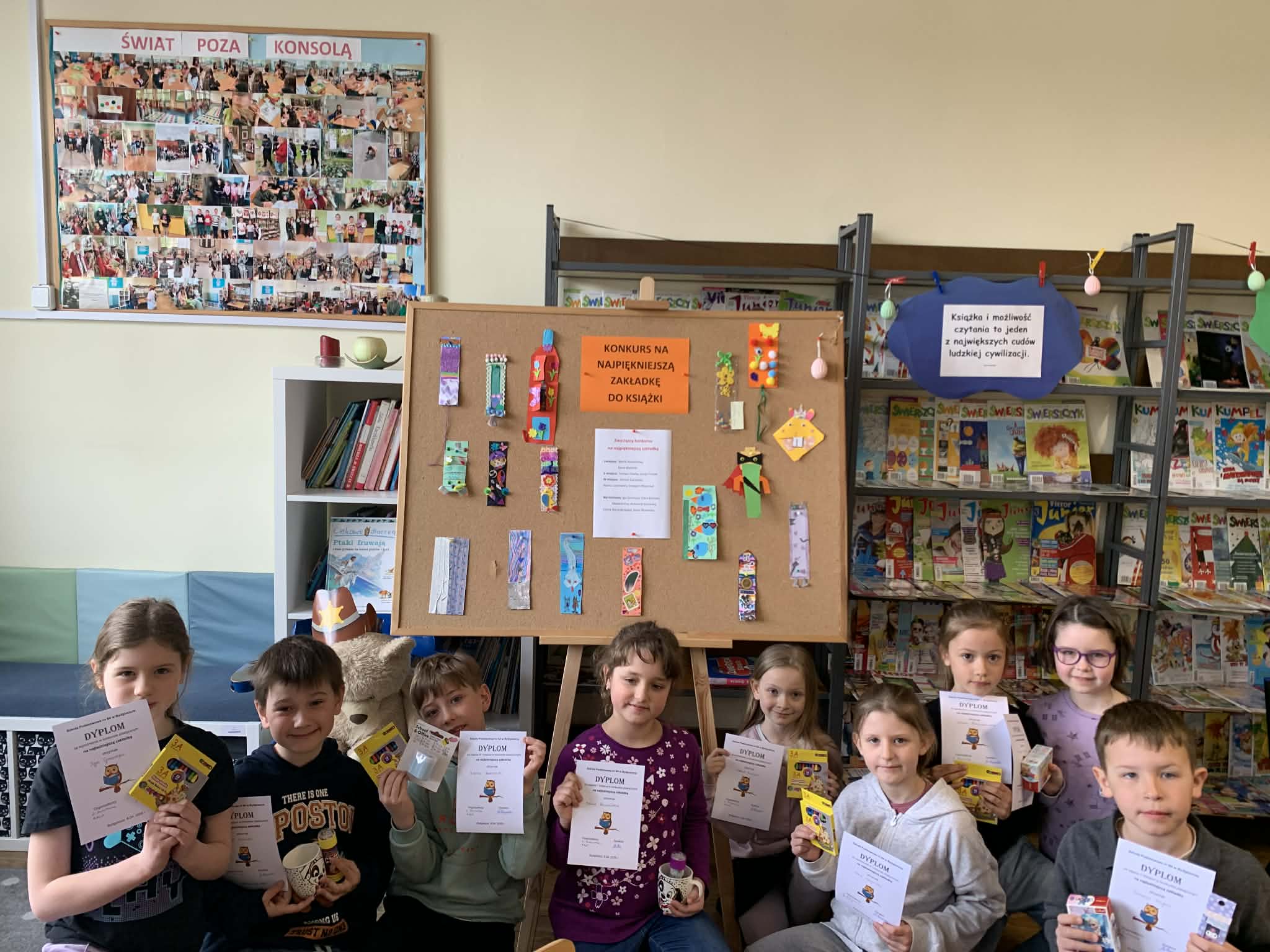 W kwietniu odbył się konkurs dla klas pierwszych na najpiękniejszą zakładkę do książki. Uczniowie wykazali się ogromną inwencją twórczą i pomysłowością, tworząc wyjątkowe i barwne prace.